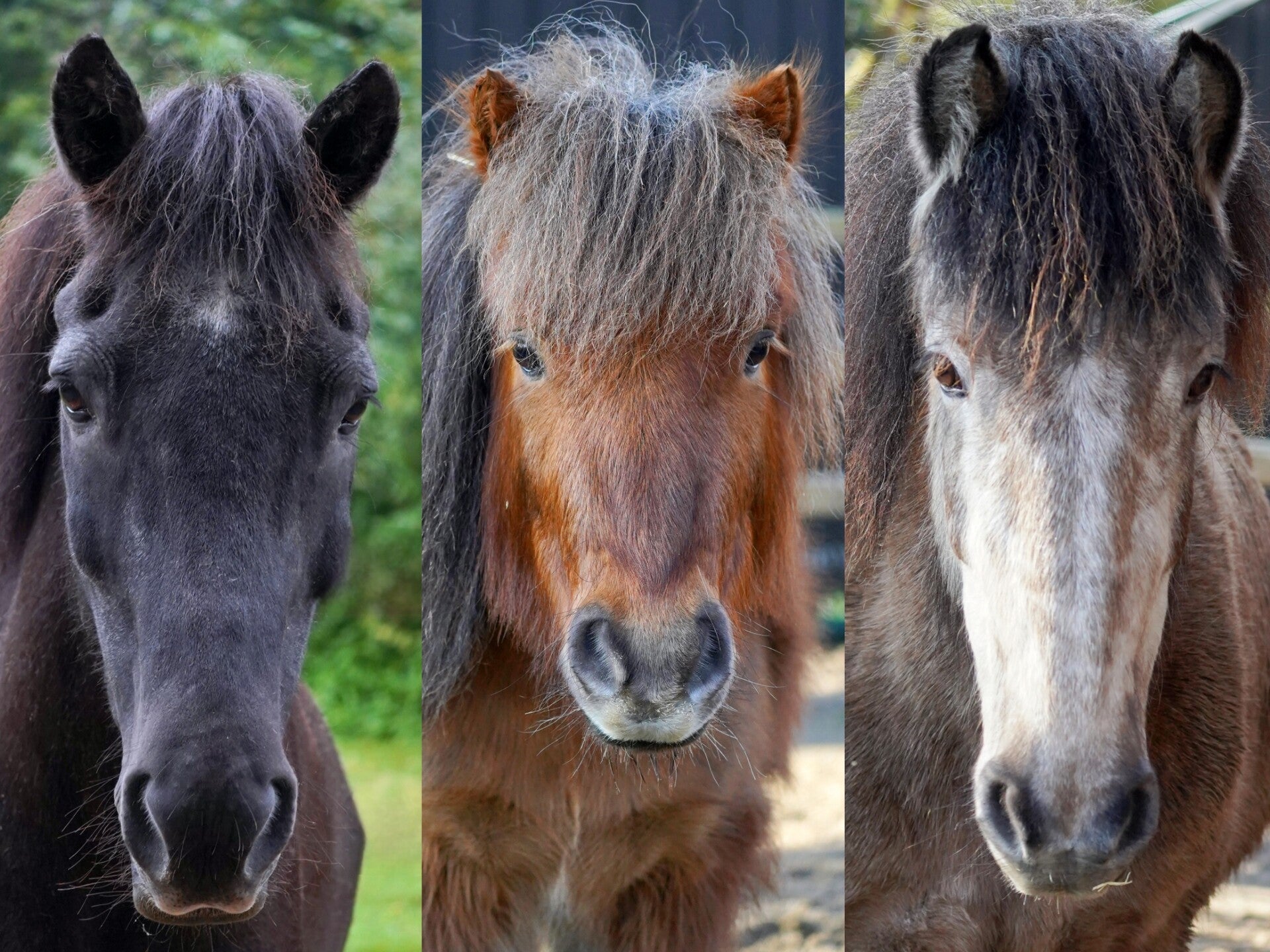 Bij Hesta Vinur werk ik niet alleen, ik krijg daarbij hulp van drie bijzondere coaches namelijk de paarden. Graag stel ik ze aan je voor, van links naar rechts: